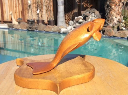 Title (ebay affiliate link): Vintage Decorative Hand Carved Solid Wood Fish Sculpture Leaping Perch ?