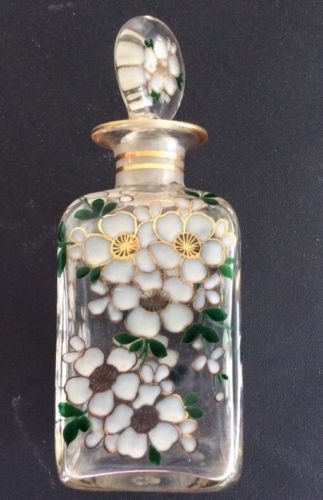Baccarat Crystal & Enameled Flowers Vintage Glass Perfume Bottle