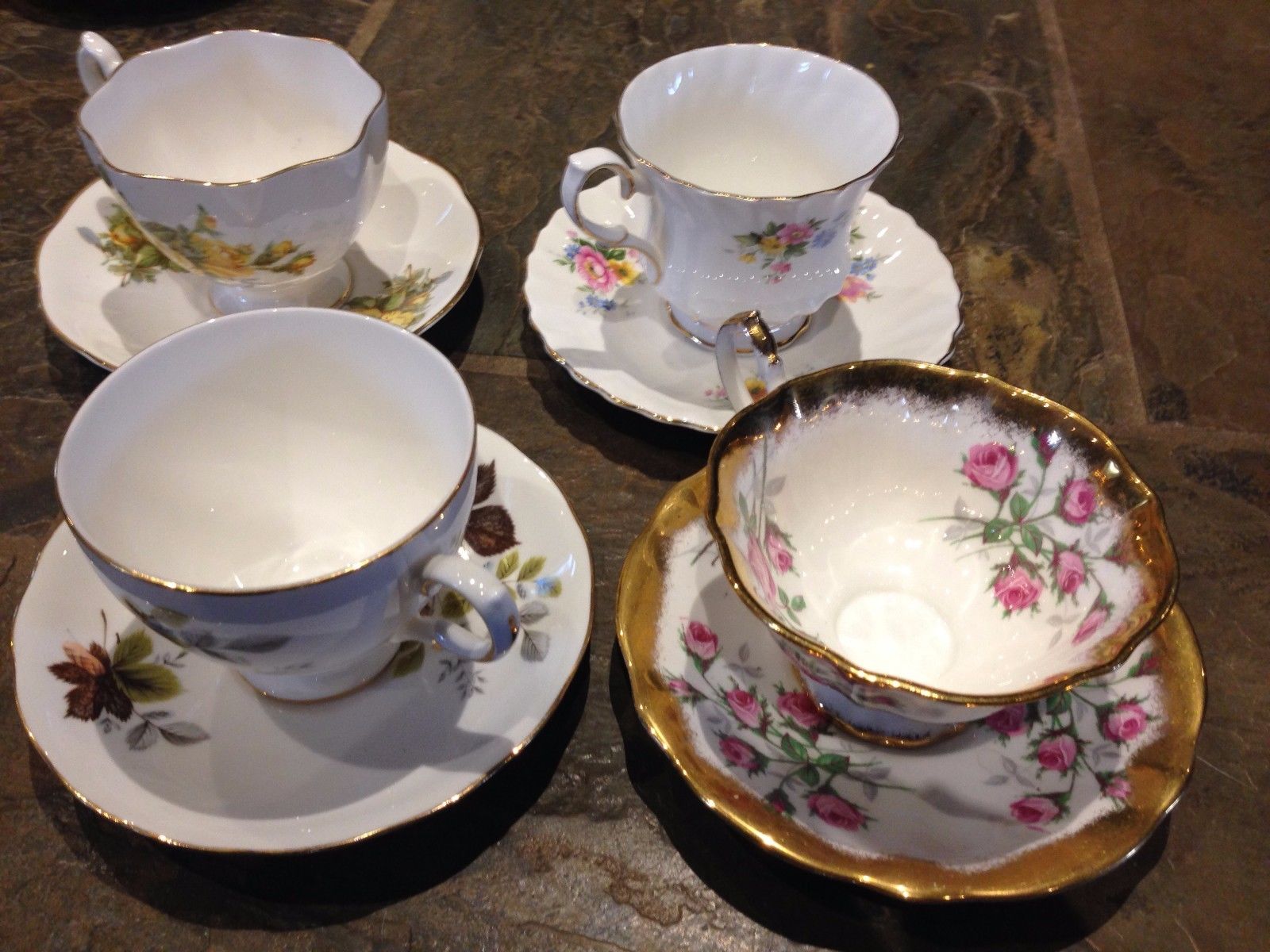 4 Queen Anne bone china, tea cup and saucer sets