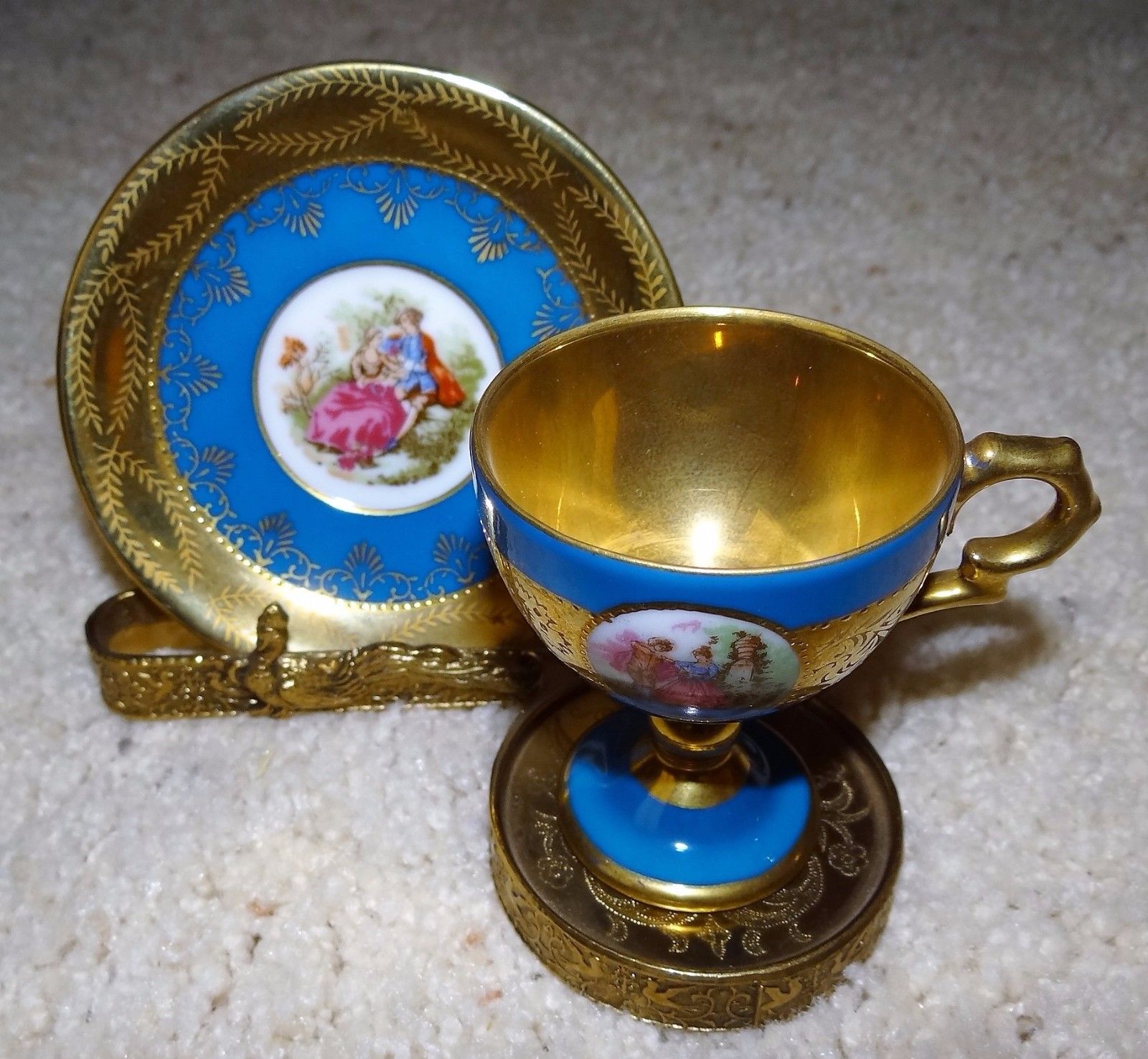 Title (ebay affiliate link): Royal Vienna Demitasse cup and saucer blue cameo and gold with display stand
