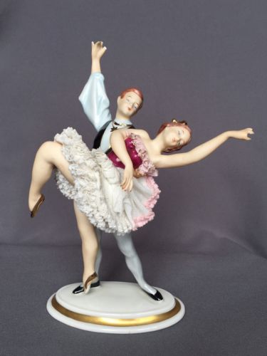 Title (ebay affiliate link): Antique German Porcelain Dresden Ballerina Couple Lady Man Dancer Figurine Dolls