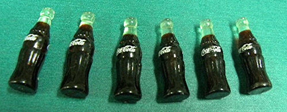 Title (ebay affiliate link): Very miniature Coca Cola Bottles lot of 6 size 1 1/8"