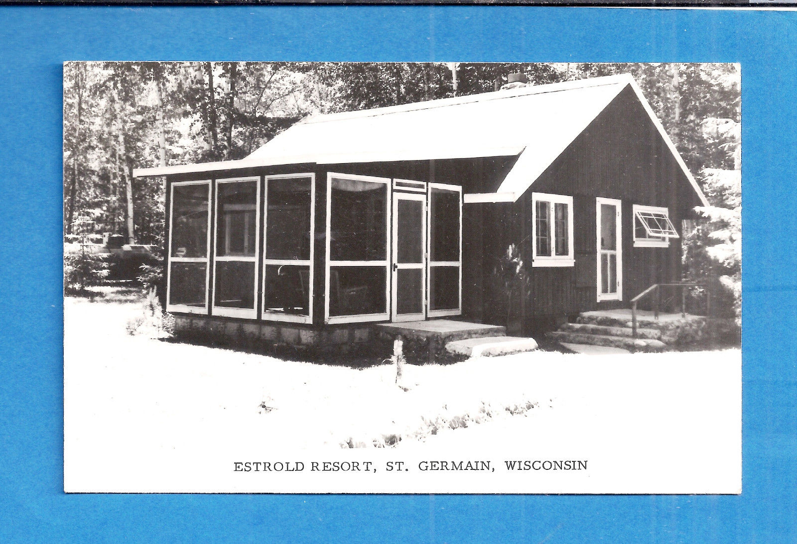 Title (ebay affiliate link): St. Germain, WI rppc Estrold Resort Winter view on postcard used 1965, Very Fine