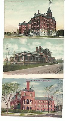 1911/1912 Detroit Hospital Postcards~Fort Wayne,Childrens Free,Grace Hospital