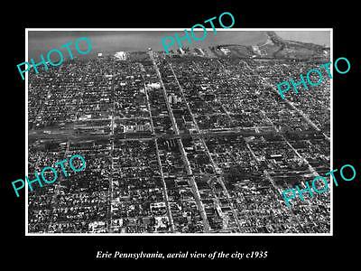 OLD LARGE HISTORIC PHOTO OF ERIE PENNSYLVANIA, AERIAL VIEW OF CITY c1935