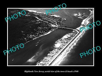 OLD LARGE HISTORIC PHOTO OF HIGHLANDS NEW JERSEY, AERIAL VIEW OF THE TOWN c1940