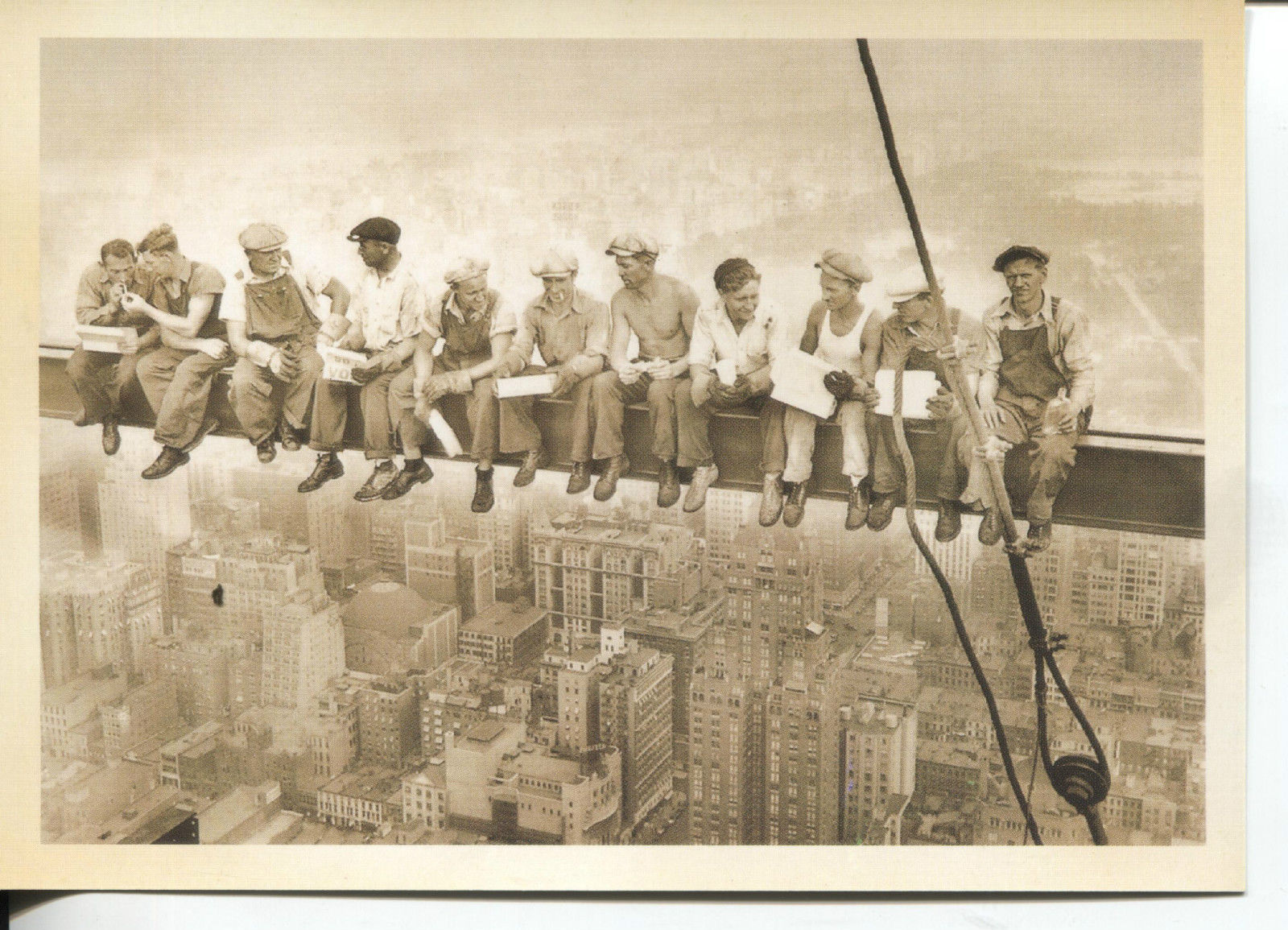 POST CARD OF IRON WORKEERS TAKING A BREAK WHILE BUILDING EMPIRE STATE BUILDING