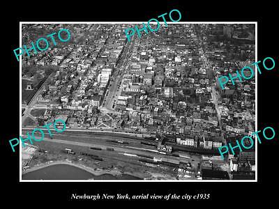 OLD LARGE HISTORIC PHOTO OF NEWBURGH NEW YORK, AERIAL VIEW OF CITY c1935