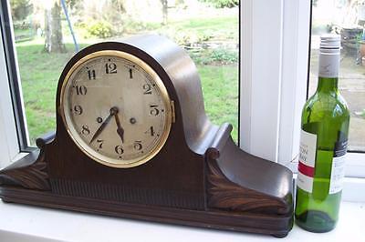 MASSIVE DARK OAK ANTIQUE NAPOLEON HAT STRIKING MANTLE CLOCK c1920