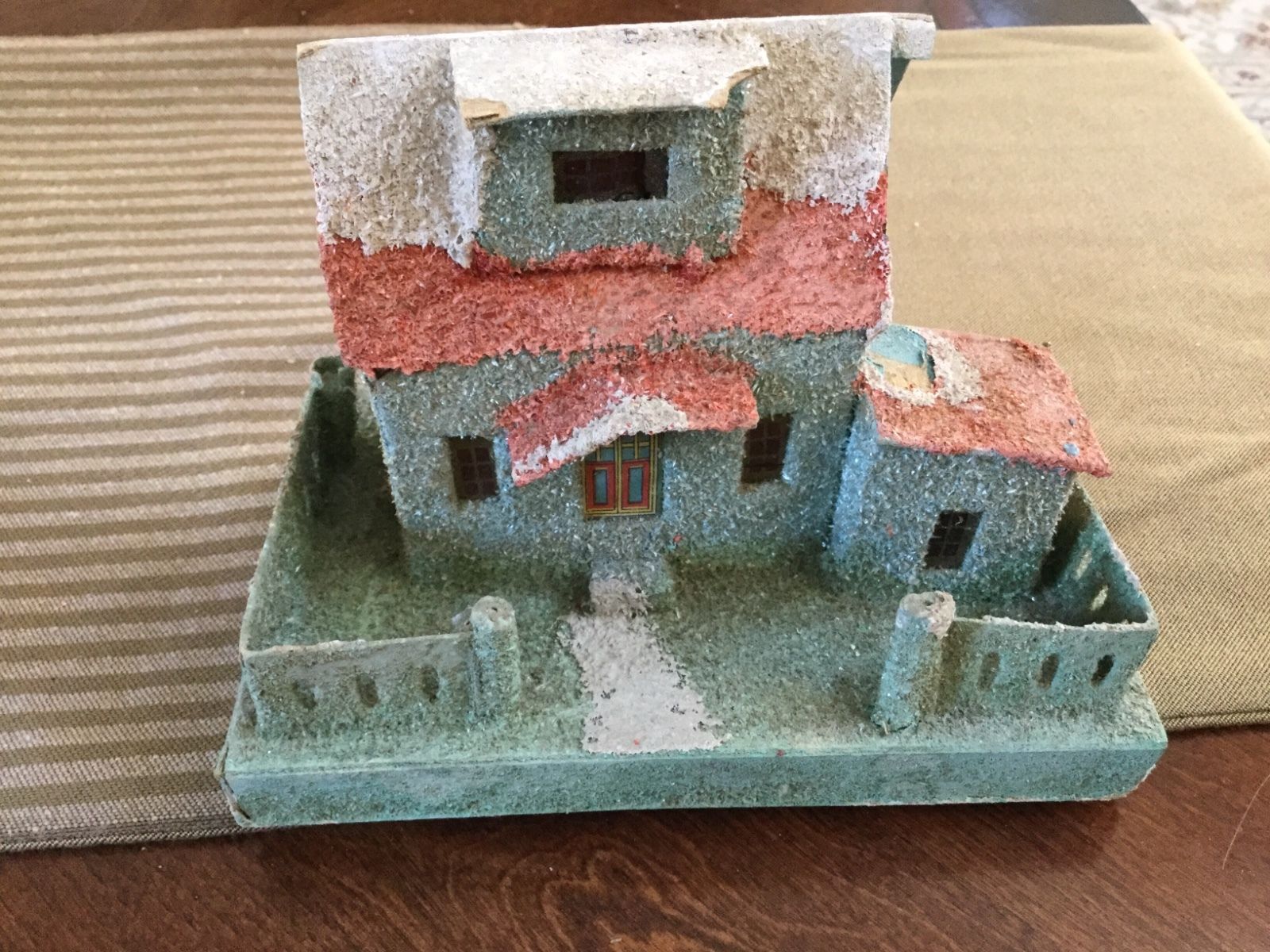 Antique Large Christmas village Japan Cardboard Putz House coconut 1920''s 30''s