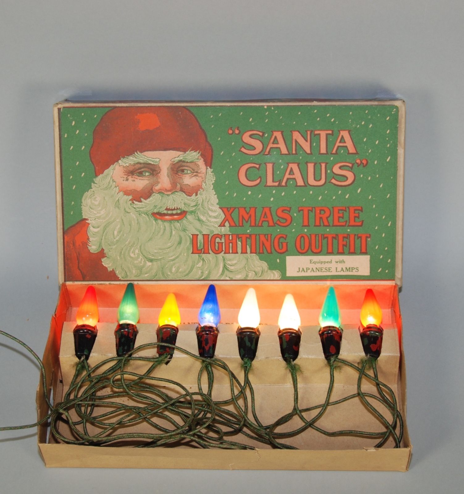 Title (ebay affiliate link): EARLY SANTA CLAUS BOXED C6 LIGHT SET #2 - GREEN GRAPHICS!