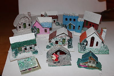 Vintage Christmas Paper Cardboard 11 Houses Mini Putz Japan Lot