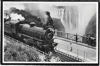 Rhodesia Postcard of Train on Victoria Falls Railway Bridge.