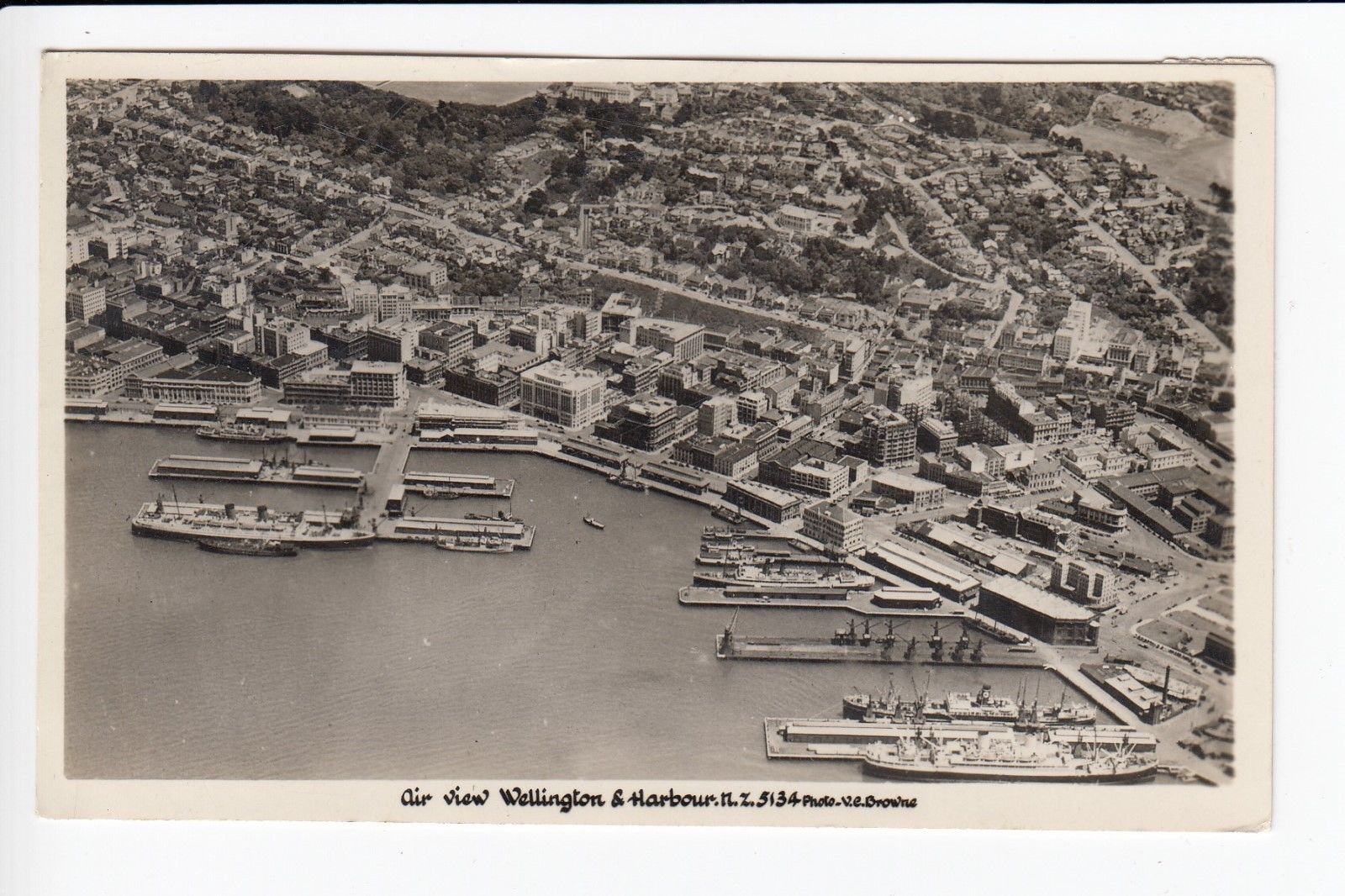 New Zealand Air View Wellington and Harbour Postcard Posted 1954 Stamps