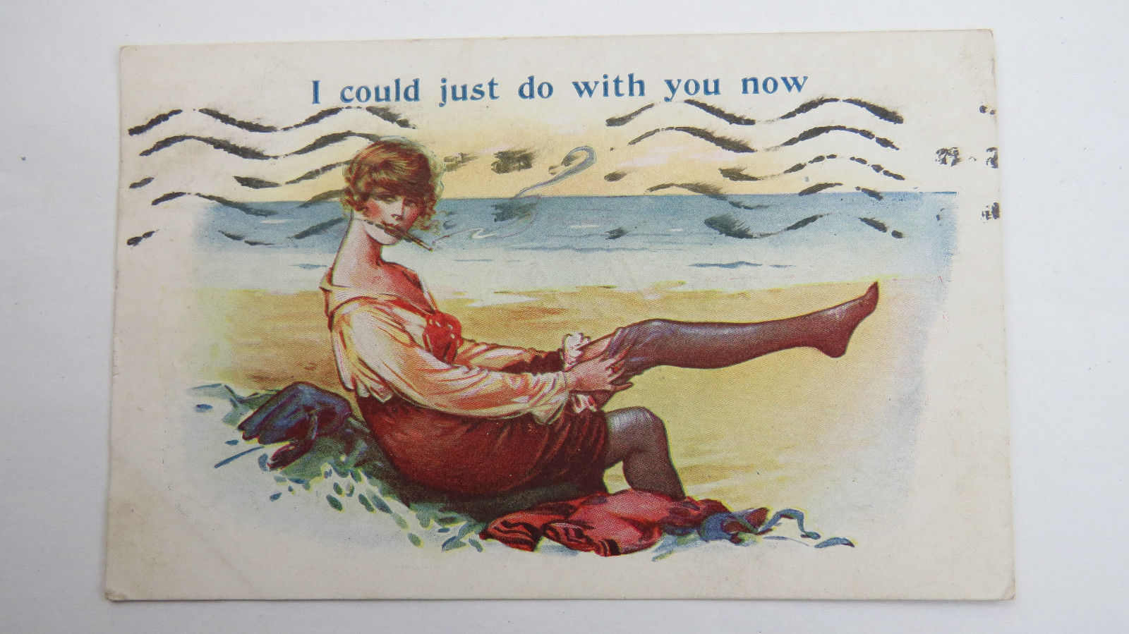 1920s Risque Bamforth Comic Postcard Flapper Undresssing Black Stockings No 970