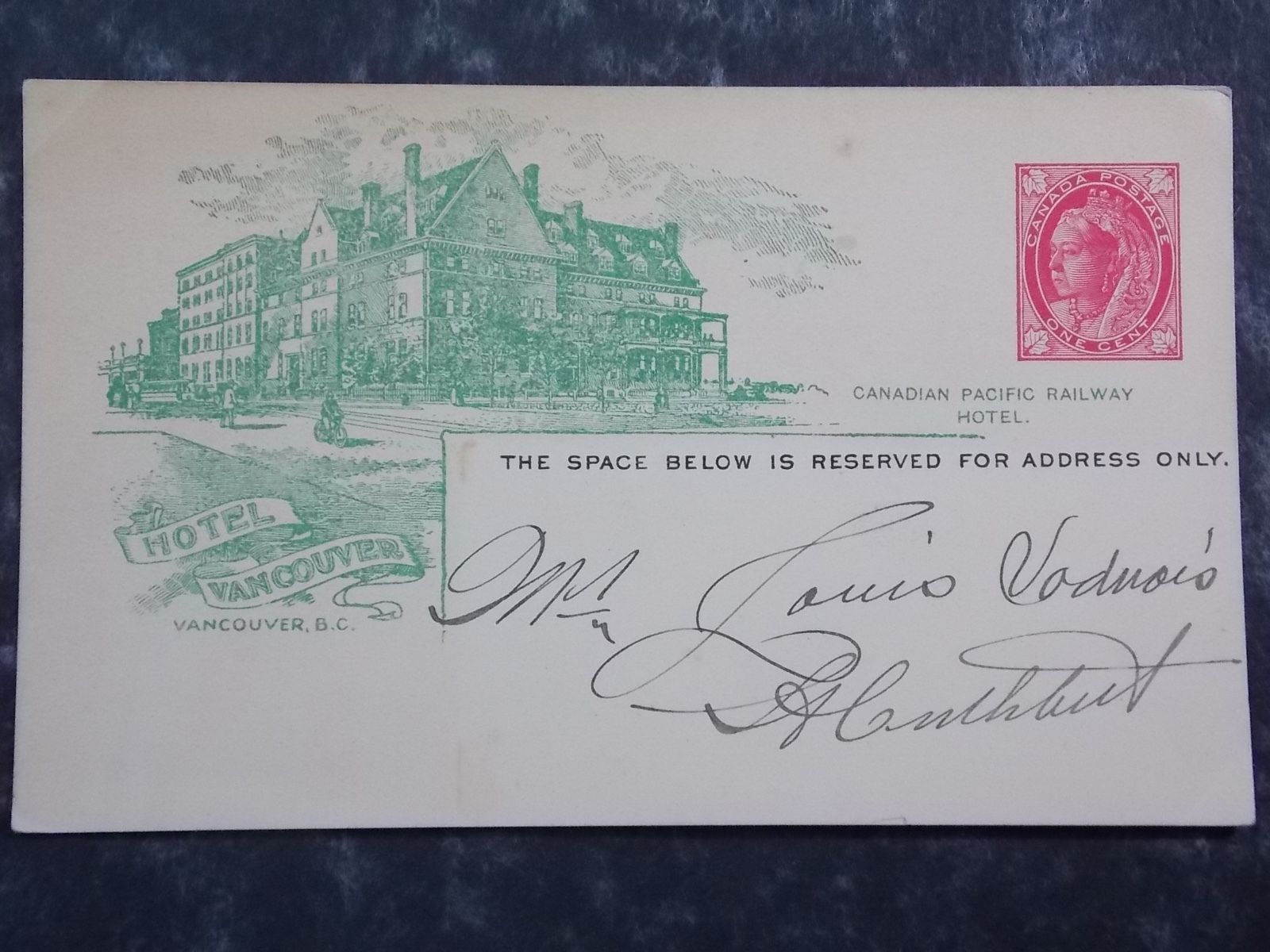 Title (ebay affiliate link): CANADA stationery postcard CANADIAN PACIFIC RAILWAY Hotel Vancouver 1901