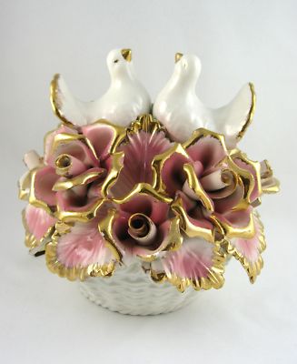 CAPODIMONTE BASKET OF ROSES AND TWO DOVES ON THE TOP