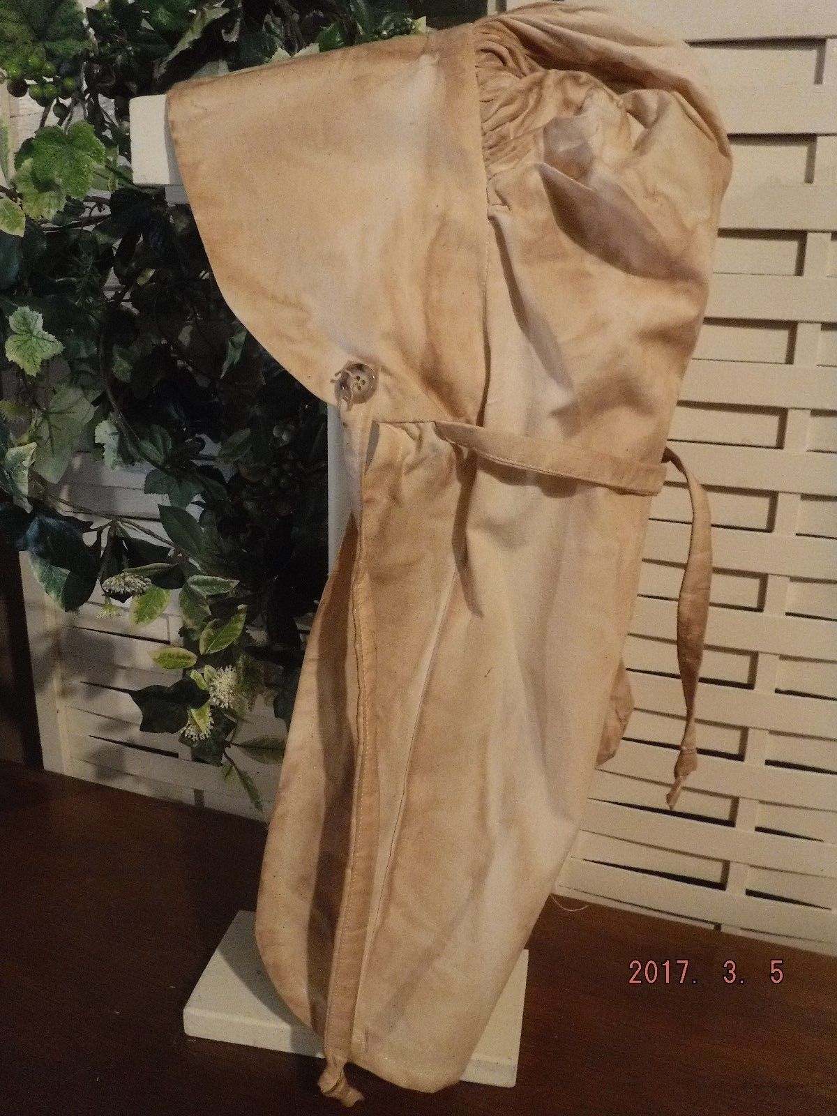 Title (ebay affiliate link): primitive prairie pioneer bonnet tea stained muslin cotton