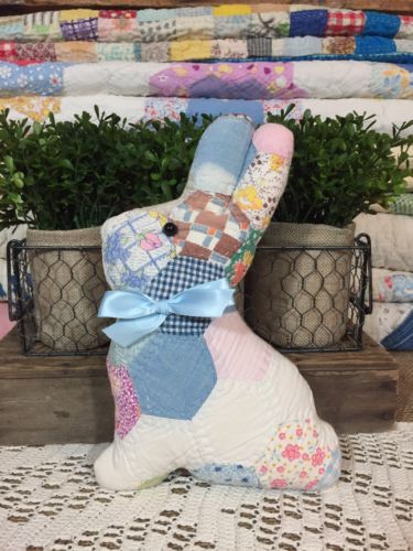 Title (ebay affiliate link): B244 ~ Primitive ~ Bunny ~ Grandmother''s Flower Garden Quilt ~ Scrappy prints