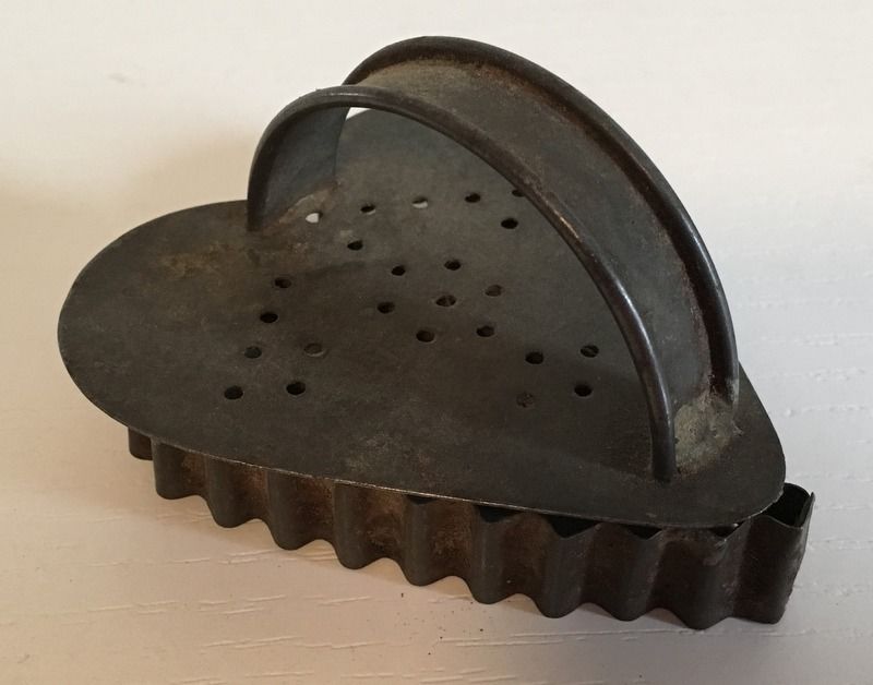Title (ebay affiliate link): 19th C Old Tin Crimped Heart & Flower Cookie Cutter Patina Arch Handle Folk Art