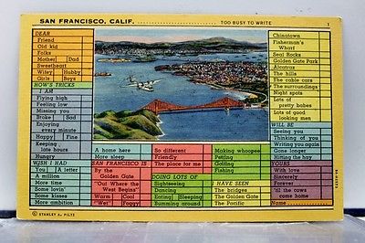 Title (ebay affiliate link): California CA San Francisco Too Busy to Write Postcard Old Vintage Card View PC