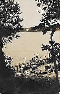 Title (ebay affiliate link): Island Park , Mi rppc pm 1908 -Boat docks and Lake - Paw Paw Lake ? Coloma