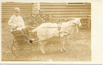 Title (ebay affiliate link): Boy and Albino Goat Cart - Two wheel cart labeled "Kansas 1915 " rppc c. 1910