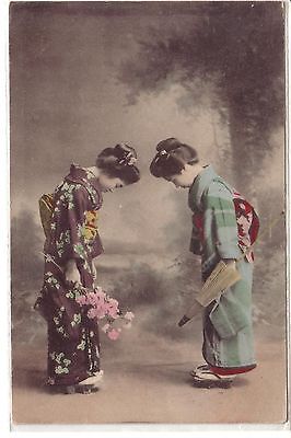 Japanese girls bowing in traditional kimonos - $1 with Free S&H