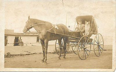 Title (ebay affiliate link): Collie Dog with man and child - Horse and Buggy in front of Fishing Boat Trowler