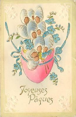 Embossed Happy Easter egg shell with flowers - 1909 antique postcard