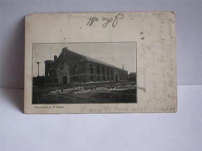 ANTIQUE PC B&W PICTURE OF THE ARMOURIES AT WINDSOR, ONTARIO, CANADA, USED 1905