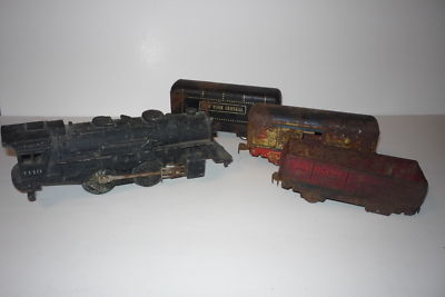 OLD TOY TIN TRAINS CAR AND LIONEL MODEL TRAIN ENGINE