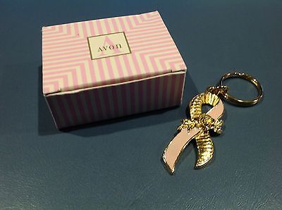 Title (ebay affiliate link): Vintage Pink Ribbon & Rose Flower Key Chain Ring AVON breast Cancer new box