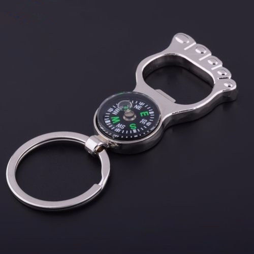 Foot shape Compass Keychain Bottle Opener Metal Key Ring Beer Cap Lifter