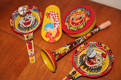Vintage Tin Noisemaker Lot Clowns Jester Party Cohn USA