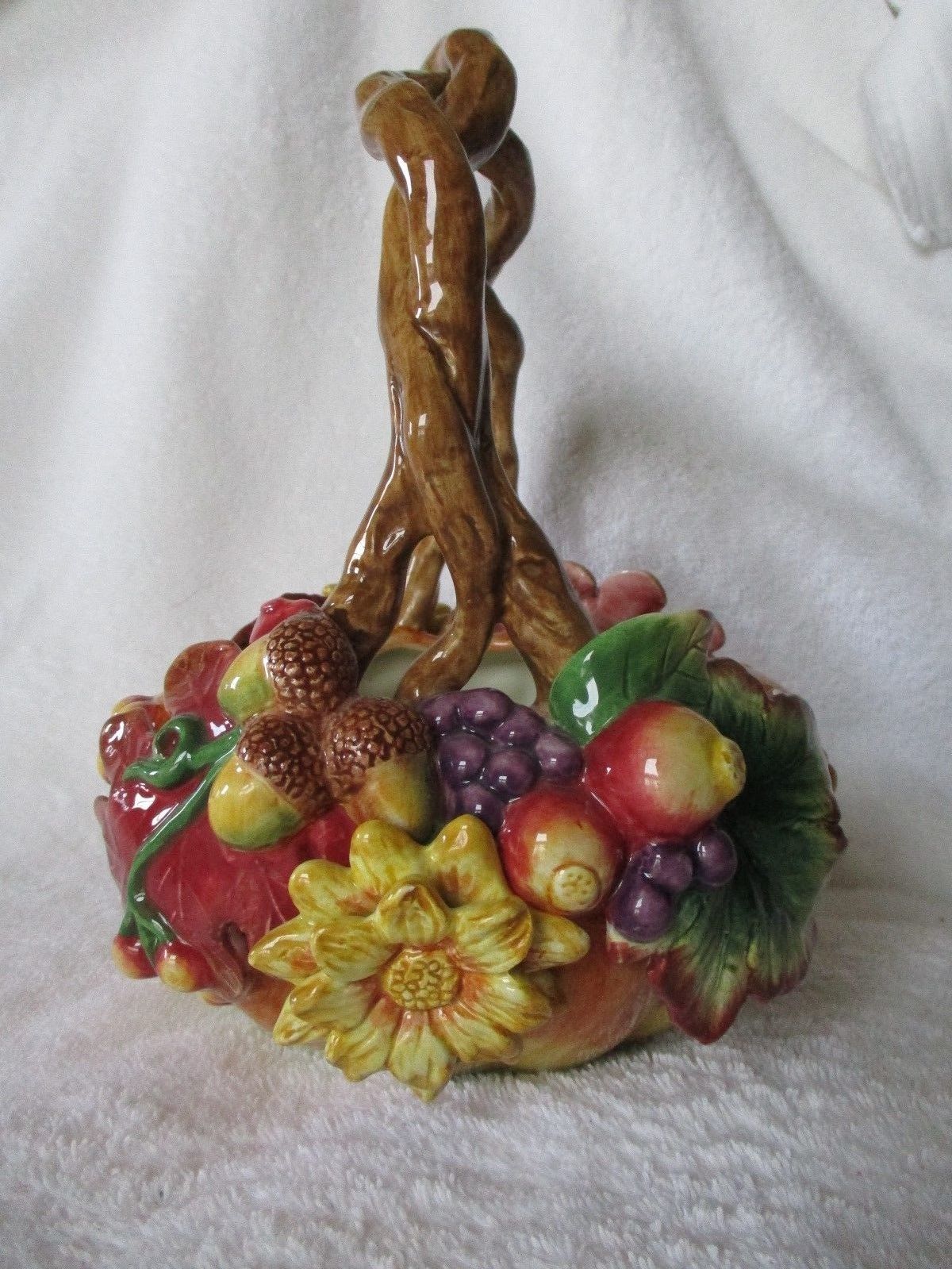 Fitz and Floyd Classics Oak Leaves Acorns Sunflowers Grapes Autumn Basket