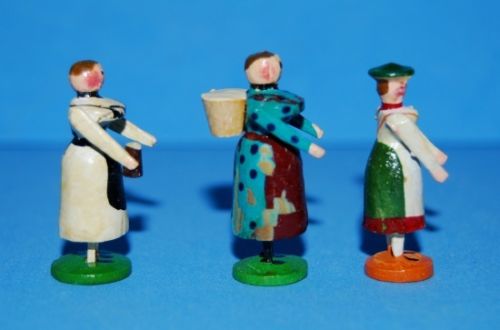 Antique Germany Erzgebirge Trio of Female Figures Noah''s Ark, Putz Scene
