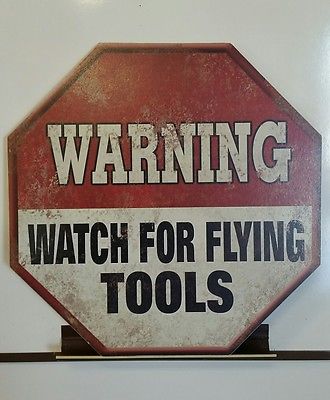 Title (ebay affiliate link): WARNING WATCH FOR FLYING TOOLS GARAGE MANCAVE WALL ART AUTO MECHANIC SHOP Decor