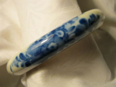 ANTIQUE BLUE ONION WHITE PORCELAIN BANGLE VTG BRACELET
