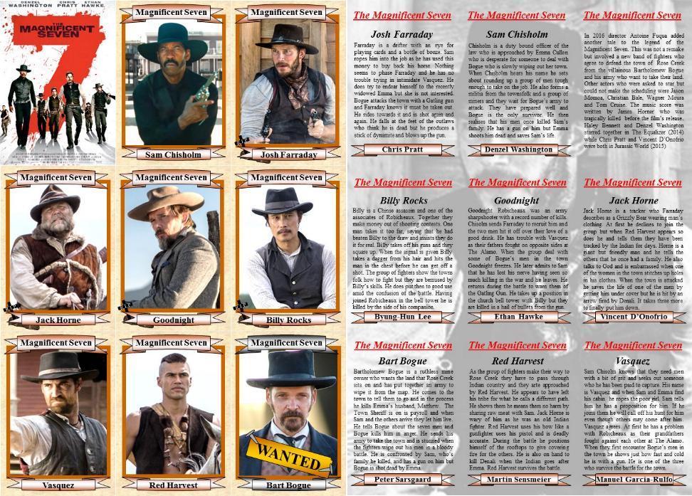The Magnificent Seven (2016) movie trading cards. Washington, Pratt, Hawke
