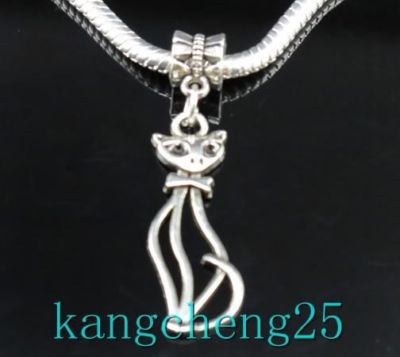 6pcs Traditional Antique Silver Hollow Cat Charms f22