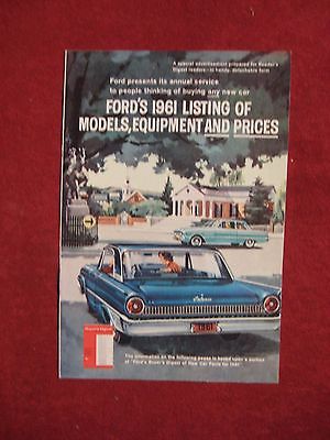 NOS Ford''s 1961 Listing of Models Equipment & Prices booklet Dealership Brochure