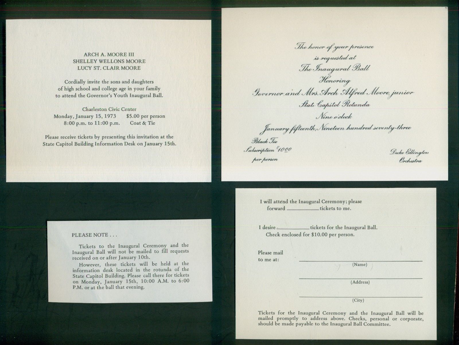 1973 WV Governor Arch Moore Inaugural Ball Invitation - Duke Ellington Orchestra