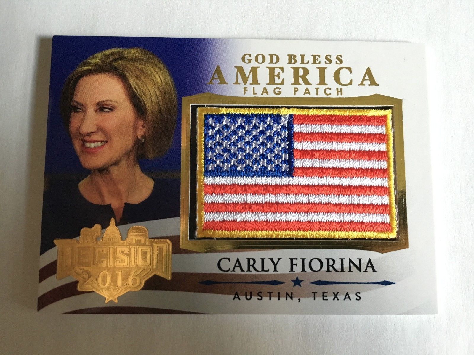 Title (ebay affiliate link): Carly Fiorina Decision 2016 Series 1 Gold God Bless America Mini Flag # GBA5