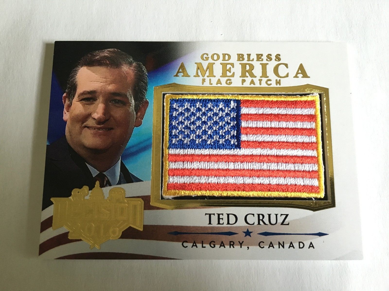 Title (ebay affiliate link): Ted Cruz Decision 2016 SER 1 Gold God Bless America Mini Flag #GBA16