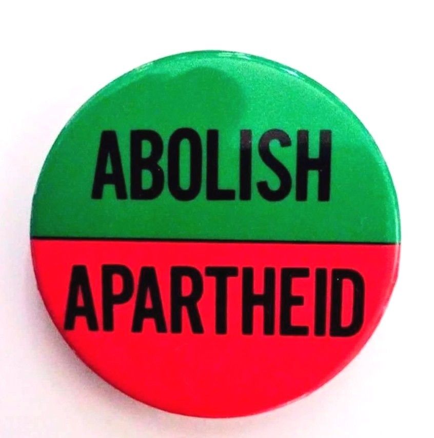 Title (ebay affiliate link): ABOLISH APARTHEID Movement -1985 South African anti-Apartheid protest button