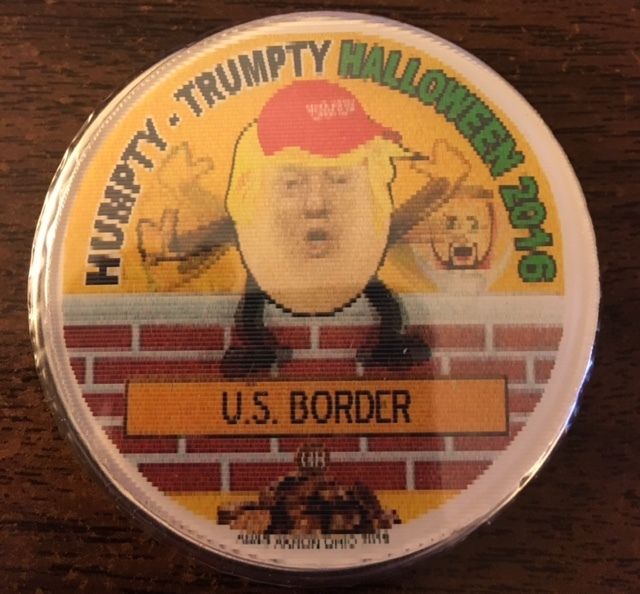 Title (ebay affiliate link): 2 1/4" Humpty-Trumpty Halloween 2016 Flasher Pinback with Waving Arms and Legs