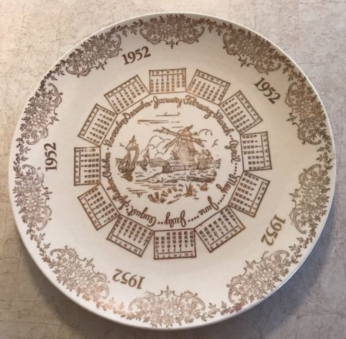Avon Calendar 1952 Plate 10 Inches Ivory/Gold