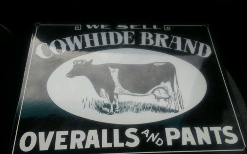 Vintage Ande Rooney "WE SELL COWHIDE BRAND OVERALLS AND PANTS" Porcelain Sign
