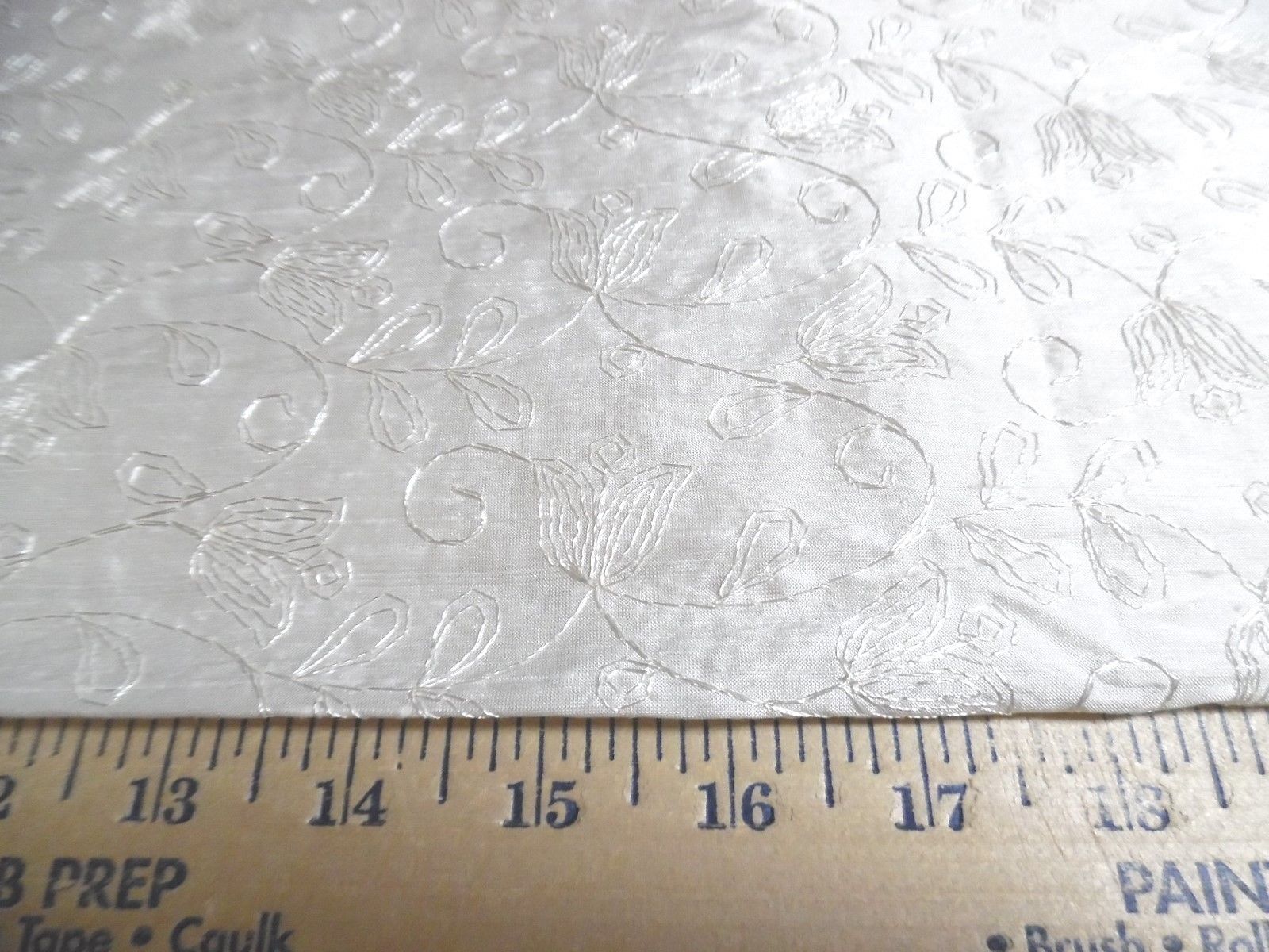 EMBROIDERED SILK SHANTUNG~CREAMY WHITE~12"x44~ANTIQUE DOLL DRESS FABRIC